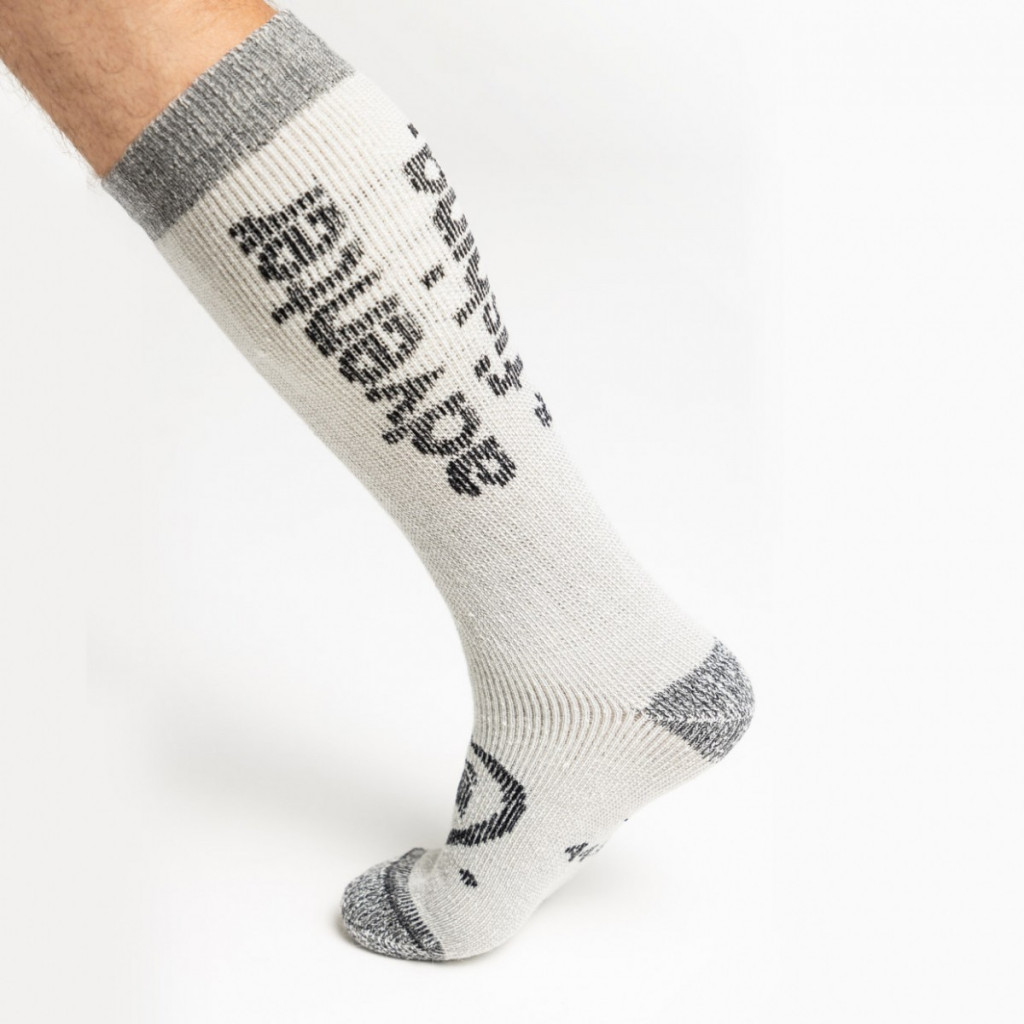 Magas szárú termikus zokni acélszürke színben. A lábszárközépig érő magasságuknak köszönhetően kiváló hőszigetelő tulajdonságokkal rendelkeznek.