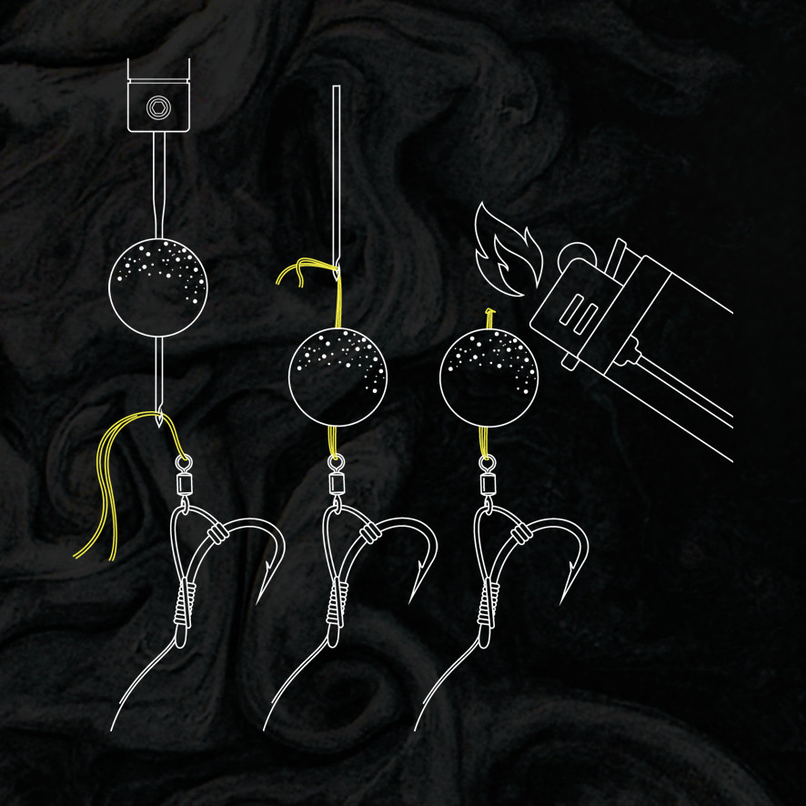 A megkötött csalit érdemes egy öngyújtó lángjával rögzíteni. A zsinór a víz alatt szinte teljesen láthatatlan.
