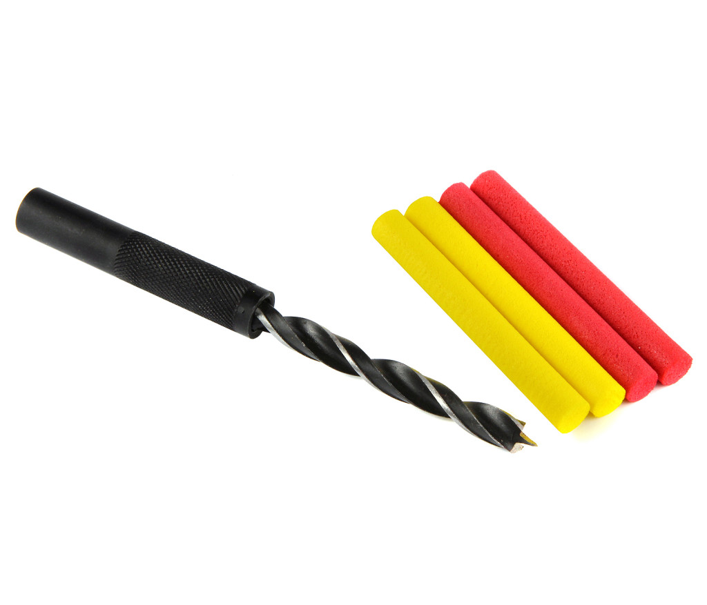 Csalifúró szár, a megfelelő méretű szivacsokkal.