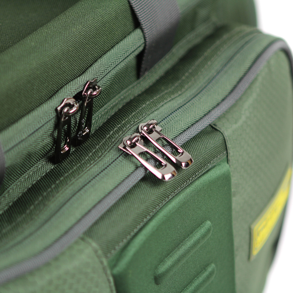 Profi minőség és kivitelezés jellemzi. A bélelt nagyméretű belső rész szinte minden felszerelést elnyel. Nagyméretű szerelékes dobozok is jól illeszkednek bele.