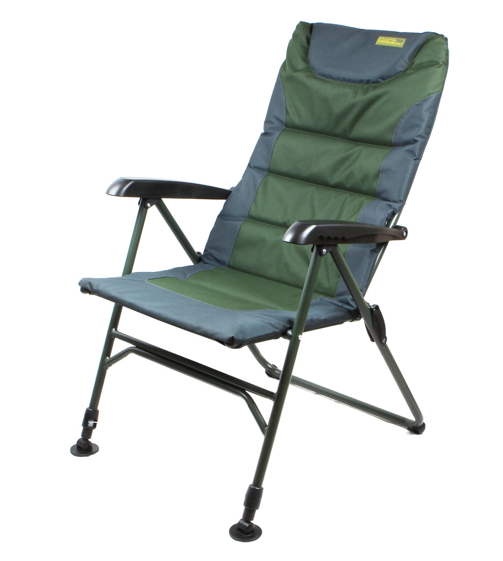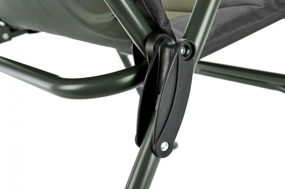 Párnázott háttmlával és ülőrésszel, teleszkópos első lábakkal és billenőfejes, nagyméretű talpakkal szerelve. A további teherbírás érdekében összetett hátsó lábakkal.