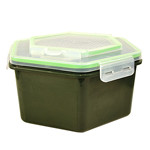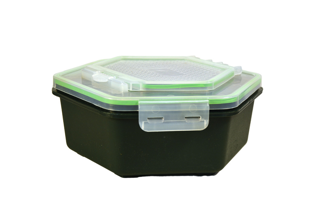 Masszív műanyag csalitároló doboz precízen záródó műanyag fedővel. Apró furatokkal ellátott fedele engedi levegőzni a csalinkat. Kis méretű furatain még a legkisebb pinkik sem tudnak megszökni. A dobozok fedele praktikus felső és oldalsó patentzárakkal van ellátva, mely miatt a praktikussága, akár csalizás során is kiemelkedő.