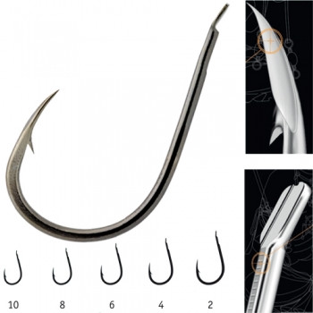 A legmodernebb technológia alkalmazásával készült ez a különleges Delta Chinu horog. A horog hegyét három különböző szögben metszették be a japán gyár szakemberei, mely által egy rendkívül hegyes egyedi élkialakítású horgot sikerült megalkotniuk. Az alkalmazott HI TECH megoldással arra is figyelmet fordítottak, hogy a száron, a lapka kialakításánál mikro recézett felület és horony biztosítsa a zsinór stabil rögzülését a horgon. Tűzött és fűzött csalik felkínálására is használható, főleg ponty és amúr horgászathoz ajánlott. Biztosak lehetünk abban, hogy az ilyen heggyel és a legelterjedtebb Chinu profillal rendelkező horgok kiváló akadást nyújtanak!