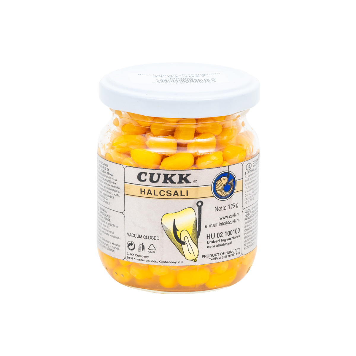 A CUKK szines üveges horgászkukoricák sértetlen, egész kukoricaszemeket tartalmaznak. A szemek keménysége és horogállósága ideális. A méz ízesítés a halak egyik nagy kedvence, legyenek azok keszegfélék, pontyok, amurok. Jó fogási eredmények és rengeteg kapitális példány kifogása fűződik a CUKK ezen termékéhez. Felbontva és gondosan visszazárva még hónapokon át is folyamatosan felhasználhatók a megromlás veszélye nélkül. A CUKK szines üveges horgászkukoricáihoz felhasznált festékanyagok élelmiszerminősítésüek, az egészségre és a környezetre veszélytelenek.