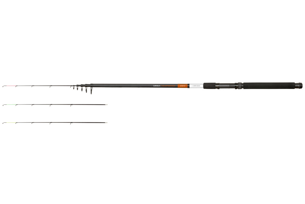 A Vesuv Feeder teleszkópos változata, melyben ötvöződik a teleszkópos botok praktikussága a 2-3 részes botok kedvező tulajdonságaival. Kimondottan azoknak ajánljuk, akik a vízpartra való kijutásnál helyhiányban szenvednek, vagy a nyaraláshoz keresnek egy kis helyigényű rezgőspicces botot.