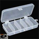 A mini műcsalis doboz mérete 6x13 cm, 5 egyforma fakkra van osztva.Tárolhatunk benne wobblert, gumihalat, villantót egyaránt. Twisterálló, tehát a gumihal anyaga nem "marja" szét!Praktikusságának köszönhetően azt is megtehetjük, hogy egy-egy gyors pecára csak pár darab műcsalit viszünk magunkkal. Pont annyit, amennyi belefér a dobozba.