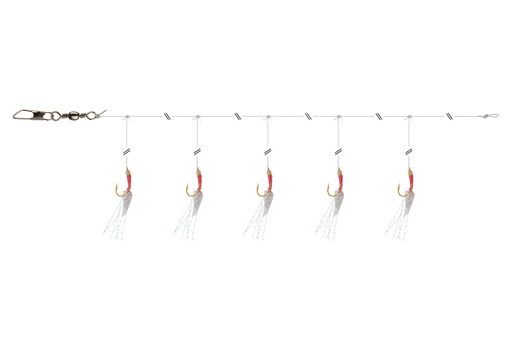 Klasszikus heringező előke szilikonból, glow-fejjel. Ideális heringre a Balti-tengeren.