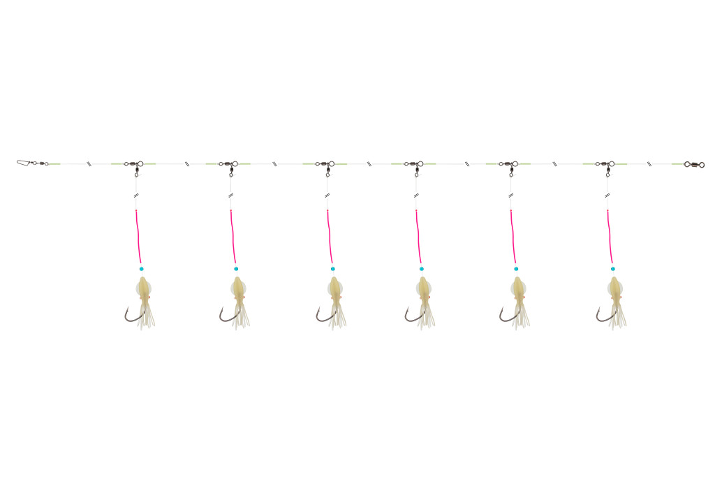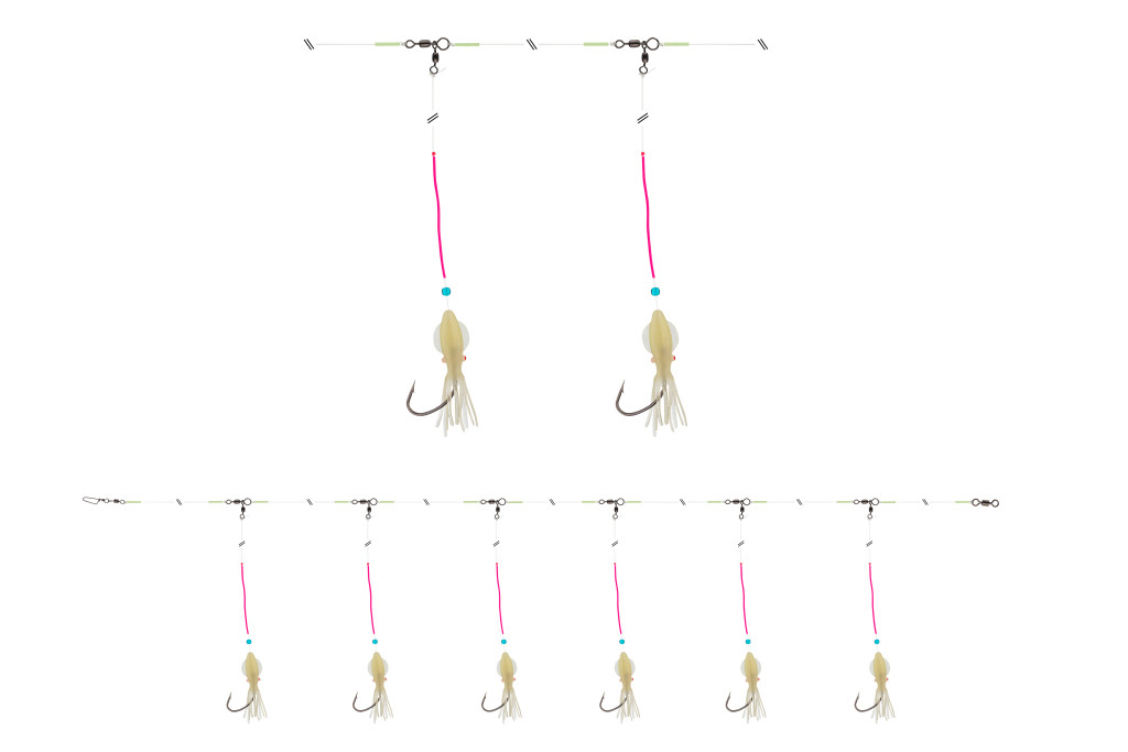 Ez az extrém minőségű előke teszthorgászunk, Horst Hennings közreműködésével készült, kifejezetten kapitális vörös sügerek horgászatára, Norvégiában. A speciális rotációs forgókapcsok az oldalágakon, a csomóvédő, valamint a polipnál lévő gubancgátló csövek megakadályozzák a szerelék összegubancolását a nagy mélységbe történő leeresztés közben, erős áramlásban is. A vékony drótú Circle Hook típusú horog biztos fogást talál a vörös sügér szájában, és a mélységből felhozás során csökkenti a leakadás kockázatát.Szereléktartó létrán adjuk, hogy bevetése után optimálisan tárolható legyen a következő vízre szállásig.