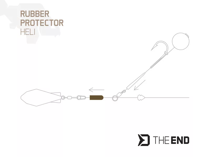 A védő stopper elsősorban helikopter szerelékekhez használatos, de számos más felhasználási lehetőséget is kínál. Kiváló minőségű gumiból készült, barna terepszínű kivitelben, fekete matt szemcsékkel, amelyek teljesen észrevétlenné teszik a víz alatt. Hatékonyan védi a kötéseket, valamint a rögzített forgót vagy multi clip-et.