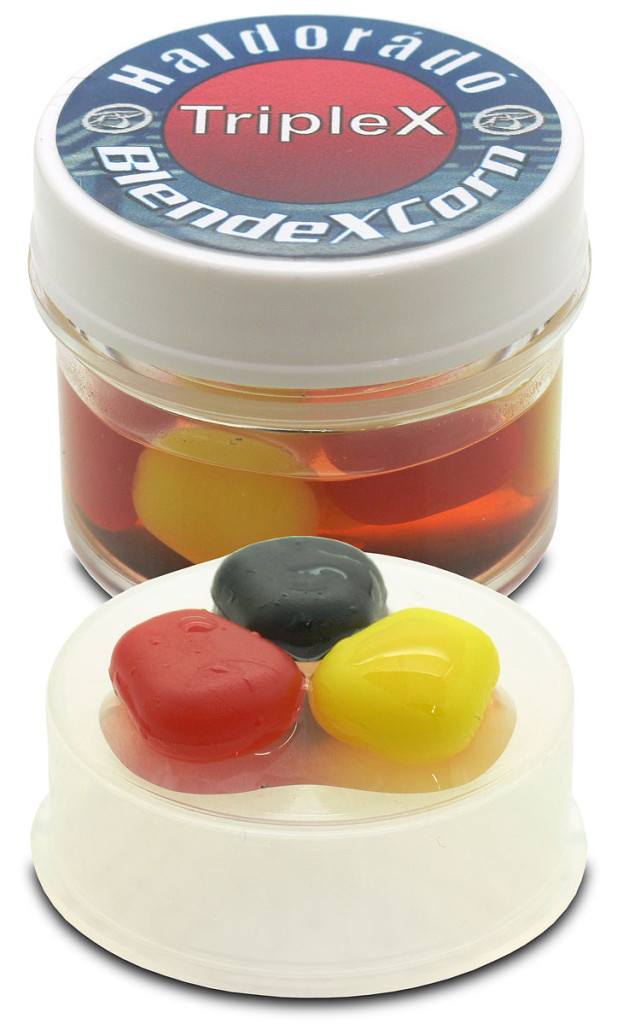 Íme, az Új Év egyik legígéretesebb csali újdonsága,  amely a népszerű BlendeX Pop Up csalik feltűnő színeivel és intenzív aromáival készült új gumikukorica (SpéciCorn) család! Így jött létre a Haldorádó BlendeXCorn, amely 6 különböző változatban kerül forgalomba. A kísérletező kedvű horgászok így már 8 különböző színű (citromsárga, narancssárga, fehér, piros, zöld, lila, kék, fekete) csalik közül válogathatnak, amelyek között garantáltan ott van fogós csali MINDEN helyzetben! Méretük, állaguk, felhajtóerejük azonos a normál méretű SpéciCorn csalikkal, itt is minden tégely 10 db finom aromában ázó gumi kukoricaszemet tartalmaz, melyek ízenként eltérően két-két különböző színben vannak jelen. Ebben a családban minden különleges és fogós  színváltozat megtalálható. Ezek közül talán a lila, kék és a fekete a legkülönlegesebbek, legszokatlanabbak. Ezek a csalik egy világos kajakupac közepén szinte "világítanak". Nagyon hatásosak akkor is, amikor egy tiszta áttetsző vízben, a hagyományos sárga, narancs, piros színek már gyanúsak a halaknak. No, akkor különösen érdemes ezeket a szokatlan színű csalikat bevetni!