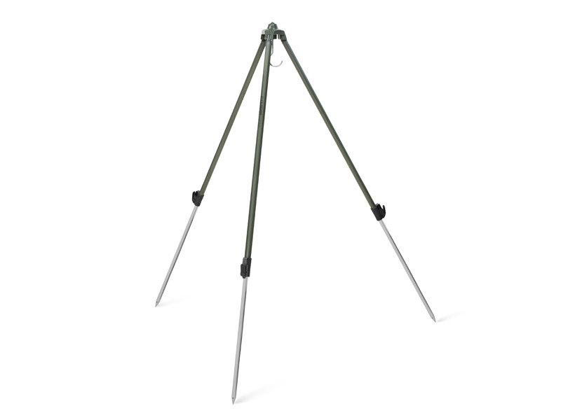 Az állvány lábai felül egy központi fémtömbben találkoznak, melynek alján egy kellően nagy és erős kampó található, amelyre egy súly és egy mérlegelő táska is felakasztható a fogásunkkal.