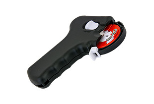 Húzzuk hátra a horogtartó zár kioldó gombját és tartsuk nyomva. A horog fejét a két fém retesz között illesszük bele a horogfej biztosító mélyedésbe és közben nyomjuk lefelé addig, amíg el nem tűnik. Akkor nyomtuk elég mélyre, ha csak a horog szára látható. Engedjük el a zár kioldó gombját. A kötözésre kiválasztott zsinórt helyezzük a vezetőrésbe úgy, hogy a zsinór vége felül legyen, a hosszabbik része pedig a készülék alján távozzon. A zsinór végét helyezzük a rögzítő fém csat alá és csúsztassuk oldalirányba ütközésig. A hurok kialakítása előtt bizonyosodjunk meg róla, hogy a hurokbiztosító csúszó elem a megfelelő pozícióban áll. A csúszó elemnek a zsinórvezető rés átellenes pontján kell állnia. Ha nem ott van, húzzuk át a vezetősínen a megfelelő oldalra ütközésig. A készülék alján kivezetett zsinórt feszítsük rá a huroktartó csúszó elemre, irányítsuk a horog felé, majd vezessük vissza a zsinórvezető résbe felülről. A zsinór hosszabbik vége visszakerült az eredeti kiindulási helyzetbe. Húzzuk hátra a horogkötöző gombot és tartsuk nyomva. A készülék elkezdi körbetekerni a horgot a zsinórral. 5-6 forgás után eresszük el a gombot.
