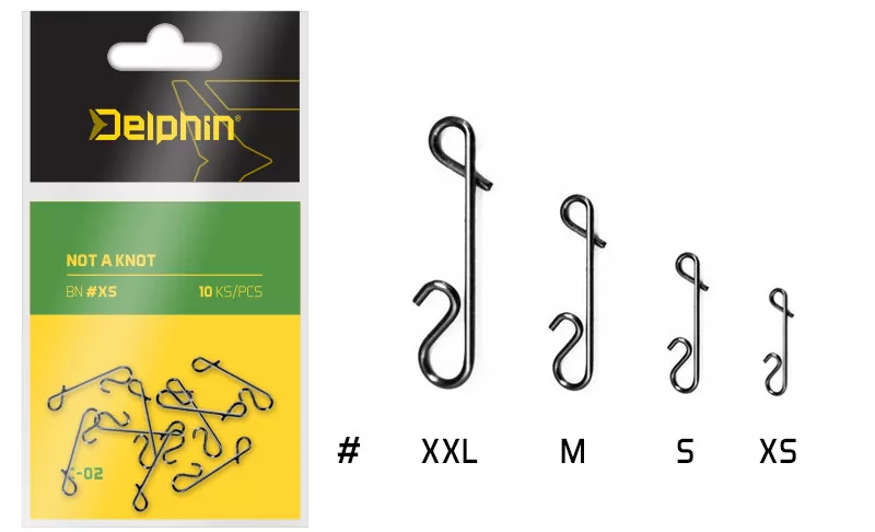A csomómentes kapocs, amelyet a köznyelvben not'a'knot kapocsként is emlegetnek, kiváló segédeszköz a damilok és zsinórok csomómentes kötéséhez szereléssel (például forgóval, horoggal, jiggel vagy kapoccsal...). Egyedülálló alakjának köszönhetően az apró horogra emlékeztető részen fűzze át az igényelt elemet, a damilon képezzen hurkot, 5x tekerje körül a kapocstestet, majd fűzze át a végén, melyhez a damil szorosan illeszkedni fog. Ezt követően húzza meg. A kapocsnak köszönhetően erős kötést hoz létre a damil vagy a zsinór teherbíró képességét csökkentő csomó nélkül.
