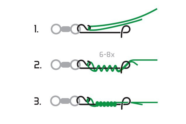 A csomómentes kapocs, amelyet a köznyelvben not'a'knot kapocsként is emlegetnek, kiváló segédeszköz a damilok és zsinórok csomómentes kötéséhez szereléssel (például forgóval, horoggal, jiggel vagy kapoccsal...). Egyedülálló alakjának köszönhetően az apró horogra emlékeztető részen fűzze át az igényelt elemet, a damilon képezzen hurkot, 5x tekerje körül a kapocstestet, majd fűzze át a végén, melyhez a damil szorosan illeszkedni fog. Ezt követően húzza meg. A kapocsnak köszönhetően erős kötést hoz létre a damil vagy a zsinór teherbíró képességét csökkentő csomó nélkül.