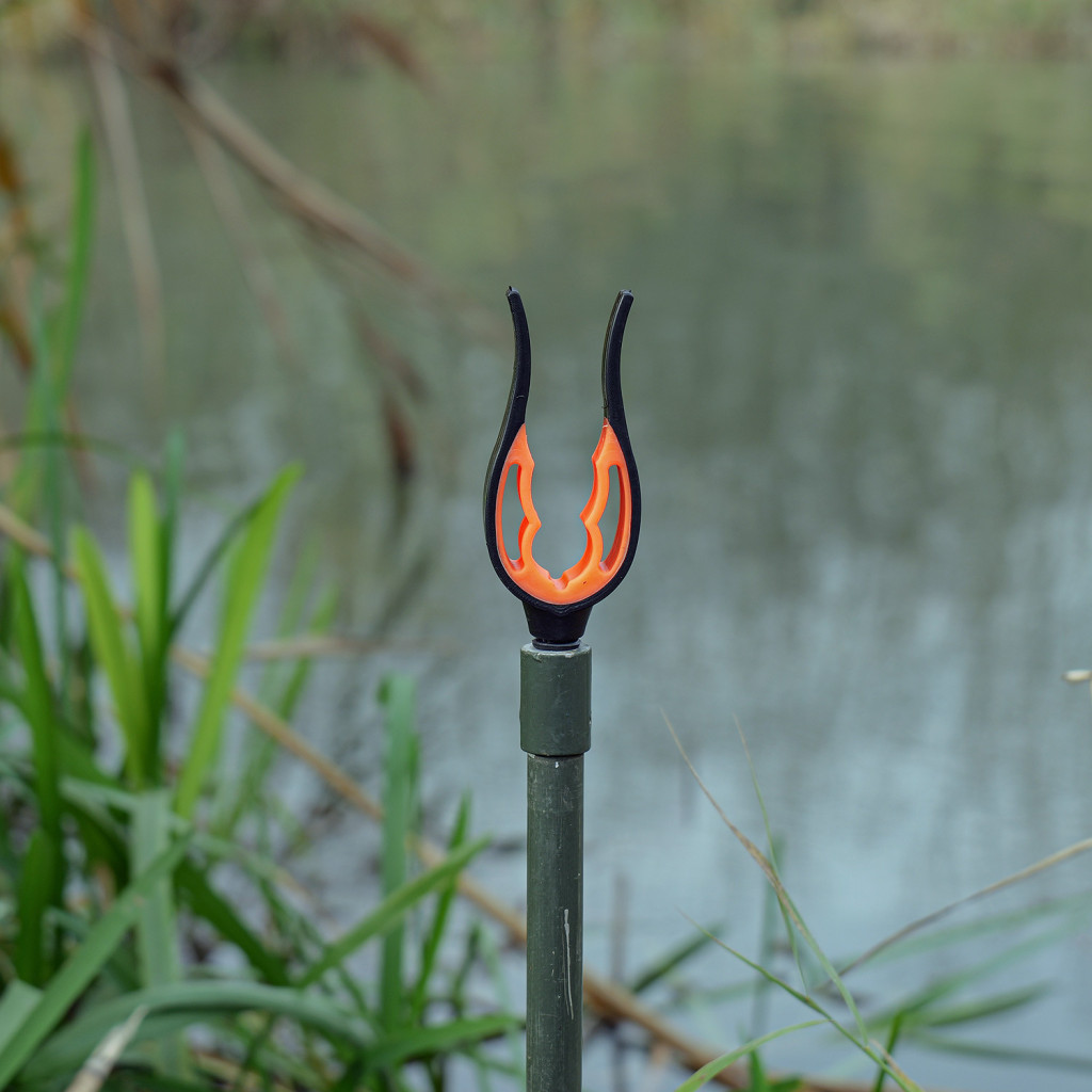 Külső műanyag kerete magasított, meggátolva, hogy kapáskor a hal lerántsa a botot. Belső, fluo narancs gumi pofarésze különböző átmérőjű botrészekhez is alkalmazkodik és stabilan tart. Színének köszönhetően éjszakai horgászat során is hasznos kiegészítő.