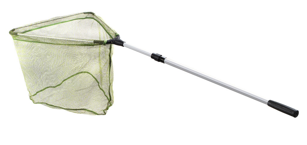 Teleszkópos, stabil, biztos fogást nyújtó gumírozott merítőháló.