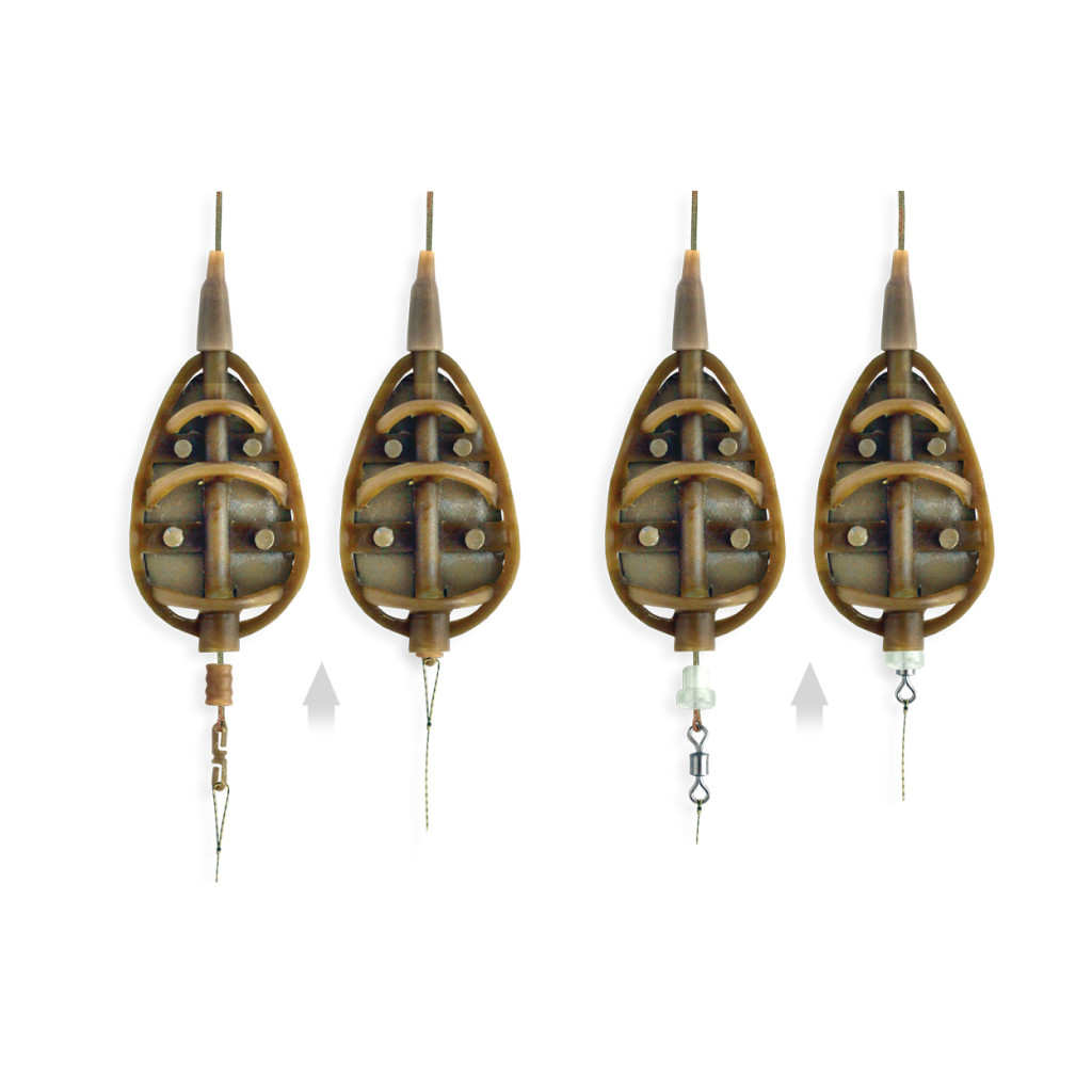 Két féleképpen tudjuk az előkét rögzíteni a kosárhoz: gyors kapoccsal és szilikon betétes forgóval.