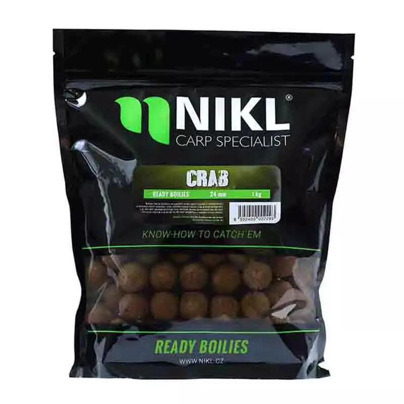 Nikl Ready bojli Crab egy nagyon atraktív részben oldódó, fogós, rákos ízvilág amely már nagyon sok alkalommal bizonyított szinte egész Európában. Balatonon, vidvizek, folyók, bányatavak, magántavak. Nincs olyan víz, ahol a Rákos ízvilág nem álná meg a helyét privát horgáaszaton, de akár verseny körülmények közt is. Nagyobb attraktivitáshoz ajánljuk az ízazonos locsolók, esszenciák, lum-x használatát.
