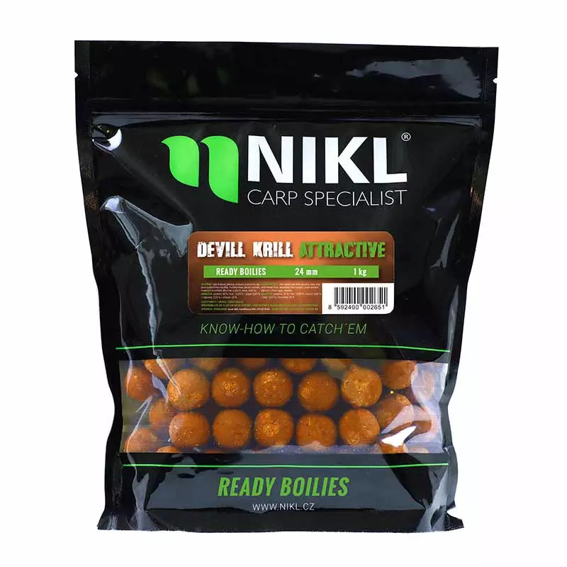 A Ready bojli Oldódó Devill Krill Attractiv a világ kombináció rejtőzik!!! Legfőképpen rövid horgászatok tökéletes csalija lehet, mivel összetételében több folyékony adalék és oldódó száraz összetevő van, mint a sima Kill Krillben. Ez az összetétel teszi kiváló választásnak versenyekre, vagy hidegvizi horgászatokra, de kapástalan időszakban is könnyeben csalhatjuk vele horogra a pontyokat az eddigi tapasztalatok alapján. Oldódása nagyban függ az etetésen tartózkodó fehérhalak aktivitásától és a víz hőmérsékletétől. Átlagos körülmények között 8-14 óra alatt oldódik. Fontos hogy nem az oldódó bojlikhoz hasonló módon, hanem lassan, a külső rétegek folyamatos leválásával oldódik.