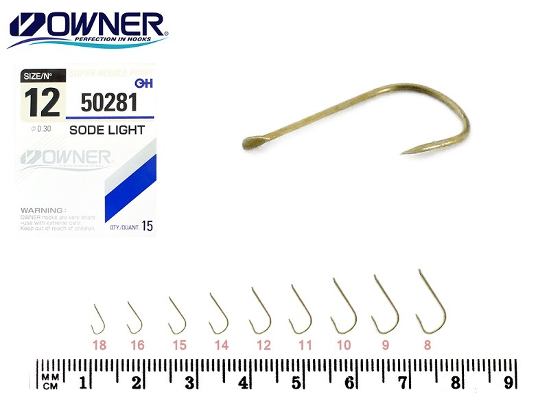 OWNER 50281 Sode Light kifejezetten keszeg horgászatra alkalmas horogtípus. Extra könnyű súlya miatt versenyhorgászok közkedvelt horga, bármilyen élő csali felkínálására alkalmas. Széles öblű, enyhén tört kialakítású, mikroszakállas. Méretei: 10, 11, 12, 14, 15, 16, 18,