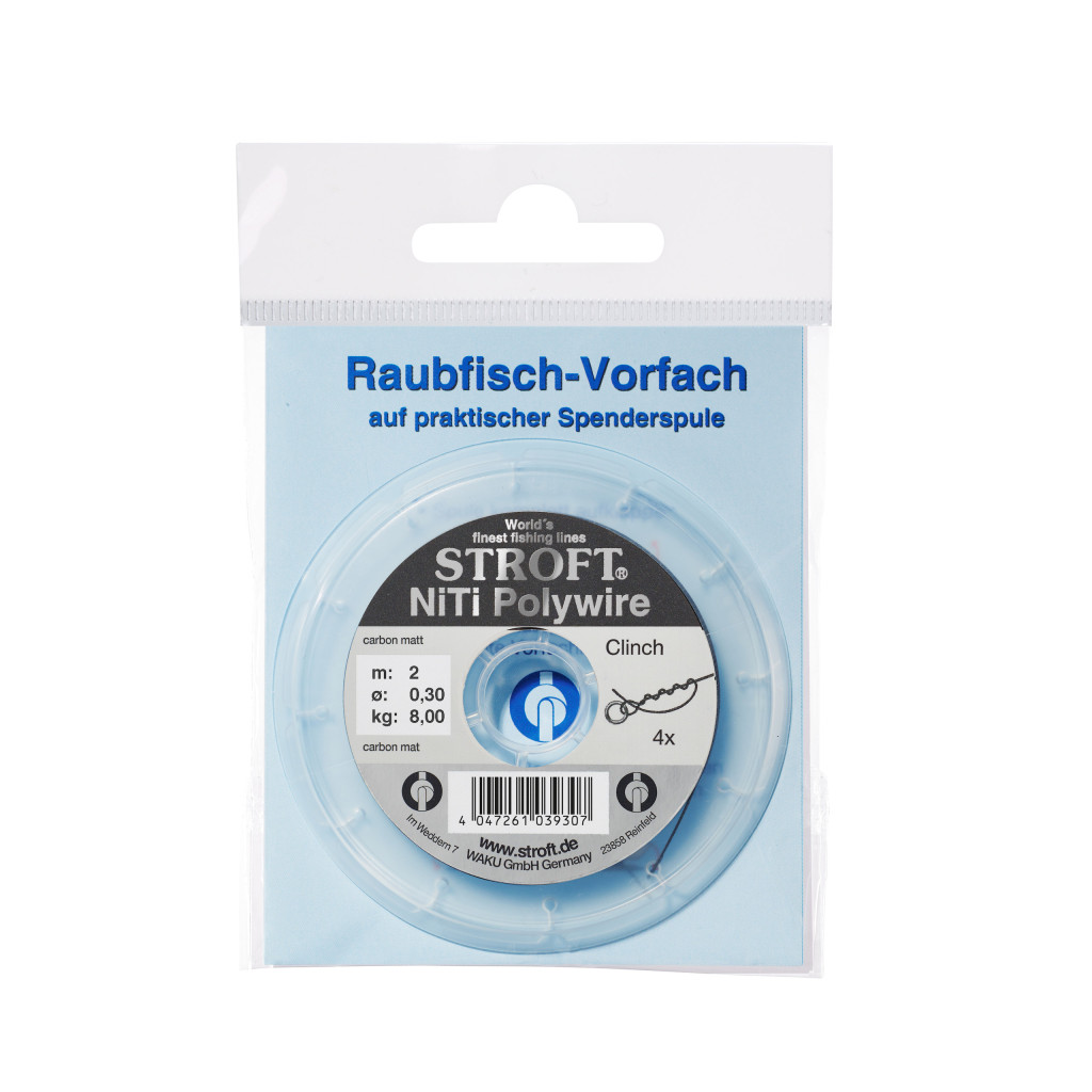 A nikkel-titán ötvözetből (NiTi) készült drótok egyre népszerűbbek a ragadozó halas horgászatban - főként azért, mert egyedülálló tulajdonságuk miatt erős hajlítás után is visszaállnak eredeti állapotukba. Vannak azonban hátrányaik is - nevezetesen amikor ezeket a nikkel-titán drótokat forgókhoz, patentokhoz, horgokhoz és más eszközökhöz csatlakoztatják. A krimpelést gyakran használják erre a célra segédeszközként. Sajnos azonban ezek a csatlakozások erősen ingadozó szakítószilárdsággal rendelkeznek,többek között a krimpelés éles szélei miatt. Ha túl erősen krimpeljük őket, fennáll a feszültségkoncentráció veszélye a krimpelés mindkét végén (a NiTi drótok általában érzékenyebbek a feszültségkoncentrációra, mint az acéldrótok), és így a drót szakítószilárdsága csökkenhet. Ha a krimpelés túl gyenge, fennáll a megcsúszás veszélye, ami szintén a szakítószilárdság csökkenéséhez vezet. Néha csomókötés ajánlott, azonban itt is, a dróttól függően, csak erősen ingadozó csomóerősség érhető el. Ezenkívül a vastagabb monowirek merevek, és a csomók kötése nagyon nehézzé válik. A STROFT NiTi Monowire és a STROFT NiTi Polywire megoldja ezeket a problémákat, és az első számú választást jelentik, ha ragadozóhalas előkéről van szó. A csatlakozások gyorsan és egyszerűen elkészíthetők. Nincsenek krimpelések, nem kellenek fogók - egy egyszerű, nagyon könnyen megköthető 4 menetes csomó a megoldás - és a STROFT NiTi-vel akár a szakítószilárdság 100%-a is elérhető! Ezt az ötvözet összetételének nagyon specifikus beállítása tette lehetővé, amelyek a ragadozó halas horgászat előkéinél kívánatosak - nevezetesen: maximális kopásállóság, szuperelaszticitás, optimális (egyszerű) csomózhatóság, a lehető legjobb zsinórmemória, maximális szakítószilárdság / maximális csomótűrő képesség, megfelelő nyúlás (8%) és a nem tükröződő felület. Szakítószilárdság: 8kg