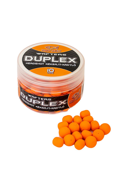 A Top Mix Duplex wafters termékcsalád tagjai azoknak a feeder horgászoknak készültek, akik szeretik az attraktív oldódó csalikat. Kikönnyített pelletek, de épp csak annyira, hogy fine tüske mellett #14 horgokkal is használhatók legyenek a legkisebb, 8-as méretek. 8mm, 10mm és 12mm méretekben kapható minden íz. Oldódási képessége intenzív, "nyitott csali", hogy az aroma mellett beltartalmi értéke is csalogassa az oda tévedő halakat. Dupla színösszeállítás mellett ugyanazzal a csalival különböző fényviszonyok mellett is horgászhatunk, egyszerűen a másik oldalról tűzzük fel a csalinkat, máris más tónusú, de ugyanolyan színvilágú csalink lesz a horog mellett.