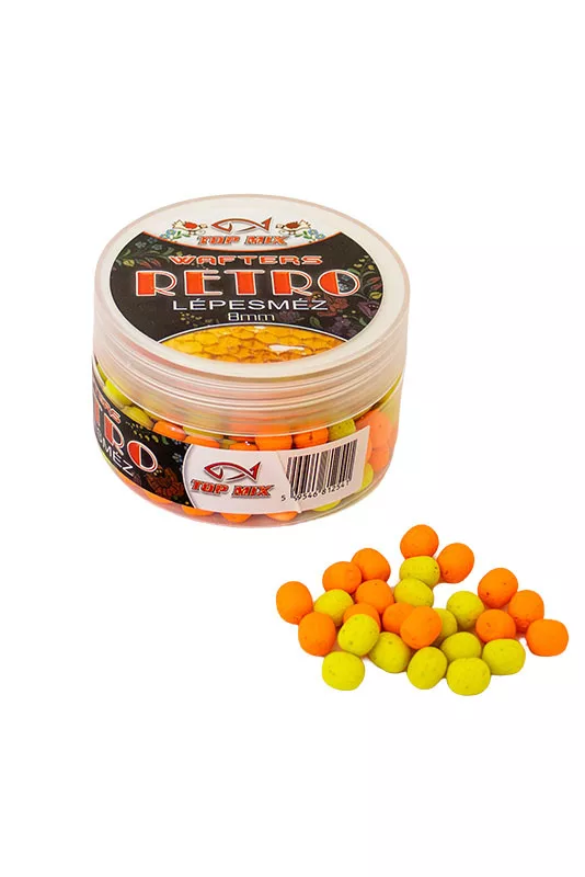 A Top Mix Retro wafters termékcsalád tagjai azoknak a feeder horgászoknak készültek, akik szeretik az attraktív oldódó csalikat. Kikönnyített pelletek, de épp csak annyira, hogy fine tüske mellett #14 horgokkal is használhatók legyenek a legkisebb, 8-as méretek. 8mm és 10mm méretekben kapható minden íz. Oldódási képessége intenzív, "nyitott csali", hogy az aroma mellett beltartalmi értéke is csalogassa az oda tévedő halakat. Retro ízviláguk visszatekintés a 2000. év előtti időszak klasszikus aromáira.