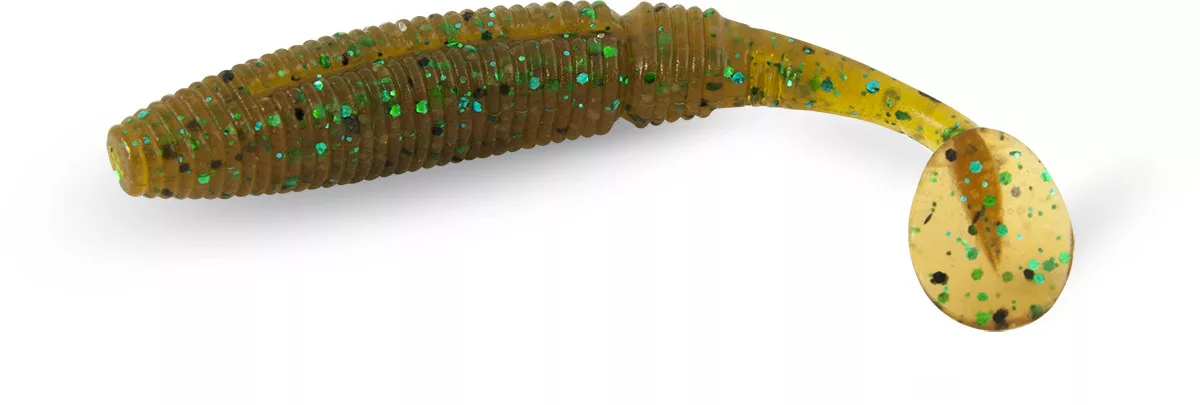 Sűrű, vékony bordázattal rendelkezik, amely szintén fogósabbá tudja tenni, a célhal pedig szinte bármilyen ragadozó lehet. A farok korong ovális alakú, ami miatt nem tudja túlveretni magát, így az állóvizek mellett a gyorsabb folyású vizekben is eredményesen alkalmazható.