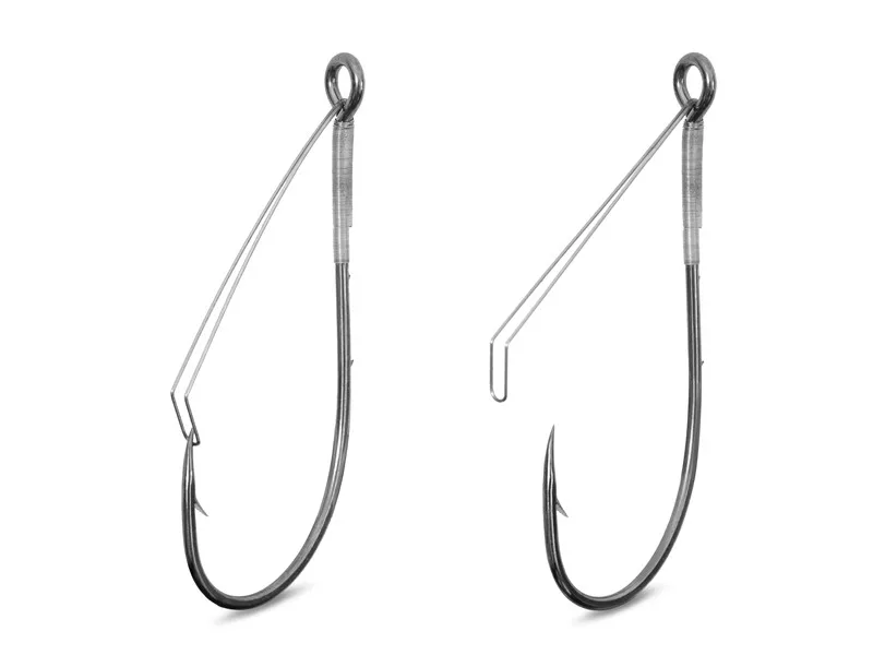 Ideális választás akadókkal teli vizekre cheburashka ólommal kombinált plasztik csalis pergető horgászathoz. Ez a nyílt hegyű horog egy érdekes kompromisszum, ha sok növényzettel, elsüllyedt fákkal vagy ágakkal nehezített vizeken horgászunk. A védőhuzal hatékonyan eltolja a vízinövények szárát, és megakadályozza, hogy a horog elakadjon. Amikor a ragadozó megtámadja a csalit, a drót lefelé tolódik, a horog hegye szabaddá válik, és már be is lehet vágni a halnak. Ez a horog nagy szemmel rendelkezik, amely lehetővé teszi a csali szabad mozgását. A horog szárán lévő két tüske biztonságosan a helyén tartja a csalit. Ezek a horgok kiváló minőségűek, és rendkívül éles heggyel rendelkeznek.